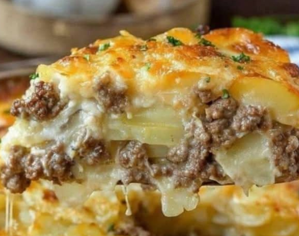 Cheesy Hamburger Potato Casserole is the ultimate comfort food—layered with tender potatoes, savory seasoned beef, creamy mushroom sauce, and plenty of gooey melted cheese. It’s cozy, hearty, and perfect for feeding the whole family. Whether you’re cooking for a busy weeknight or planning ahead for a crowd, this casserole is a guaranteed hit.