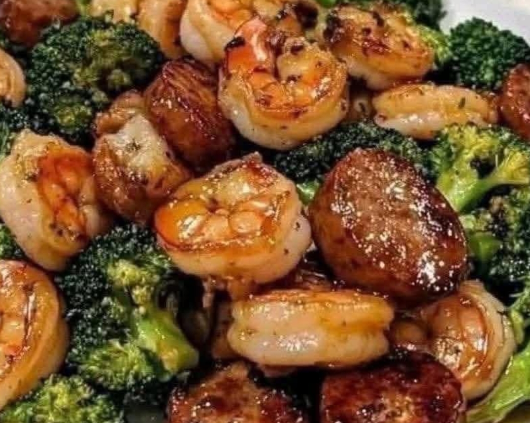 Return the shrimp and sausage to the pan. Pour the honey garlic sauce over everything and toss well.