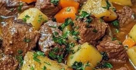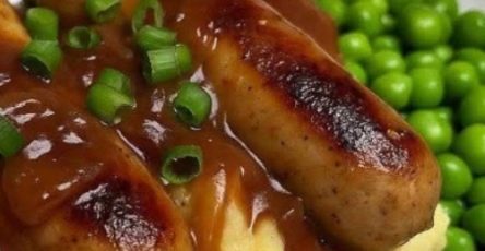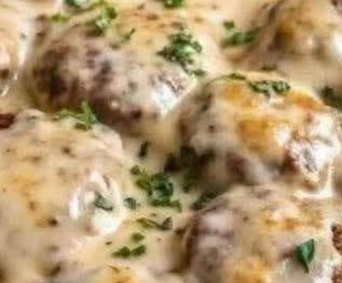 Return the burgers to the pan and add the mushrooms and onions. Top with the Worcestershire sauce, heavy cream, and beef broth.
