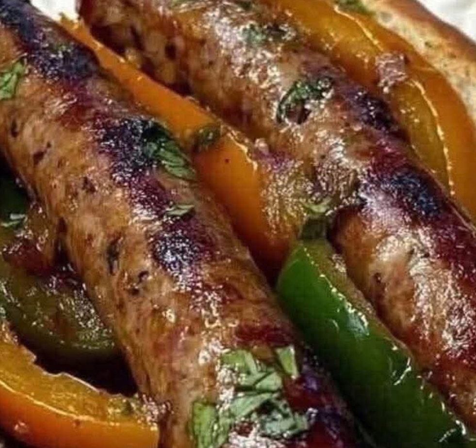 Return the sausages to the skillet with the peppers and onions. Reduce the heat to low, cover, and simmer for about 10 minutes to allow the flavors to blend.