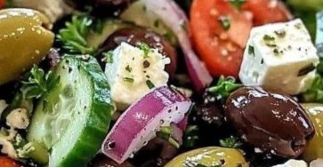 Ingredients: Instructions: Prep the Vegetables: Slice the cucumbers and red onion. Halve the cherry tomatoes. Cube the feta cheese. Assemble…