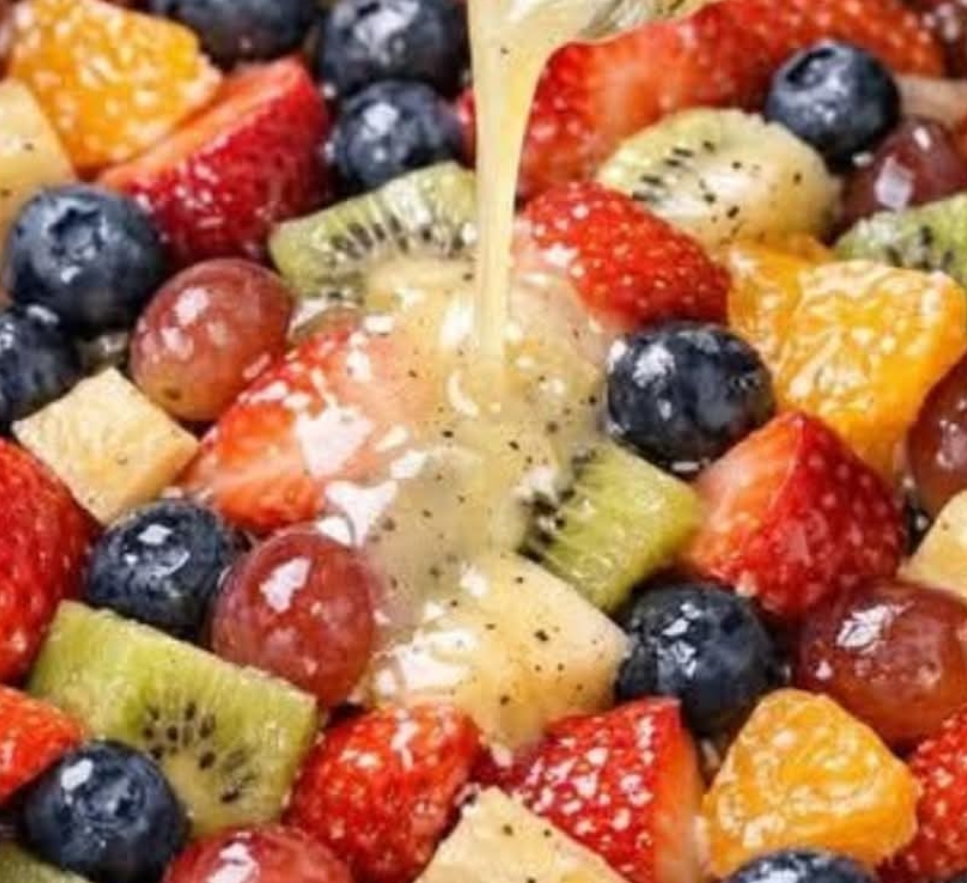 • 4–5 cups mixed fruit (strawberries, blueberries, grapes, kiwi, pineapple, oranges)